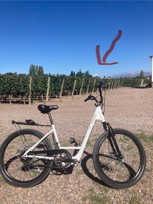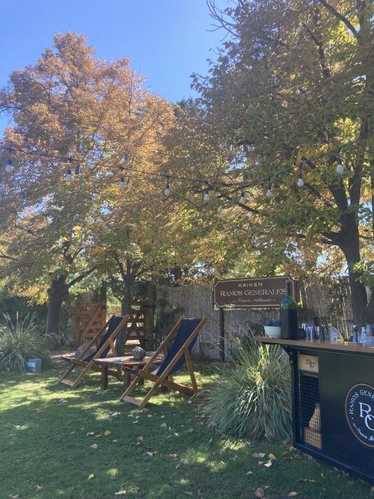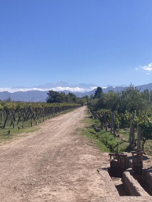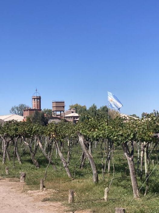 Mit dem e-Bike zum Chardonnay Am Sonntag erfolgte dann noch ein Radausflug wie ich ihn mir für die Region Mendoza vorgestellt hatte. Zum einen hatte ich ein deutlich besseres Rad als am Freitag ausgeliehen. Im Internet bin ich auf den Anbieter, ein junges Startup Unternehmen, gestoßen. Sie vermieten einige Elektrobikes, die in einem sehr guten Zustand sind. Zudem gibt es per WhatsApp Nachricht einige Routenempfehlungen mit dazugehörigen Vorschlägen für Weingüter und anderen interessanten Punkten. Es bleibt einem wieder selber überlassen, wie weit man fahren und welche Stopps man einlegen möchte. Auch die Weinregion um Luján hat mir noch besser gefallen als die Region um Maipú. Sehr gute Radwege führten durch eine attraktive Weinregion. Durch ruhige, grüne Wohnlagen und immer wieder einem spektakulären Blick auf die Anden im Westen ging es vorbei an etlichen Weingütern zu meinem Ziel, dem Weingut Kaiken. Dieses Weingut ist ziemlich bekannt und für mich war es genauso, wie ich mir eine Bodega in Mendoza vorgestellt habe. Am Eingangsportal wurde ich freundlich empfangen und auf alle möglichen Angebote hingewiesen. Es gab ein in die Landschaft herrlich eingebettetes Gartenlokal mit angeschlossenem Degustationsgebäude und Verkaufsshop. Ich entschied mich für die Verkostung einer der besseren Weißweine und entschied mich dann für einen im Fass gereiften Chardonnay. Für mich an diesem Tag der perfekte Wein, um die Landschaft und den Ausblick auf die teils schneebedeckten Anden im Liegestuhl bei einem kühlen Weißwein zu genießen. Und da sich diese Situation für mich nahezu perfekt anfühlte, beschloss ich, keine weiteren Weingüter aufzusuchen, sondern an diesem schönen Ort noch zu verweilen.Die Rücktour endete mit einem Essen auf dem Marktplatz von Lujan, der an diesem Sonntagnachmittag eine ruhige und entspannte Dorfatmosphäre ausstrahlte.