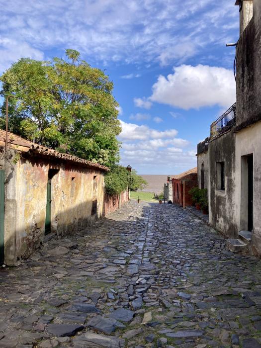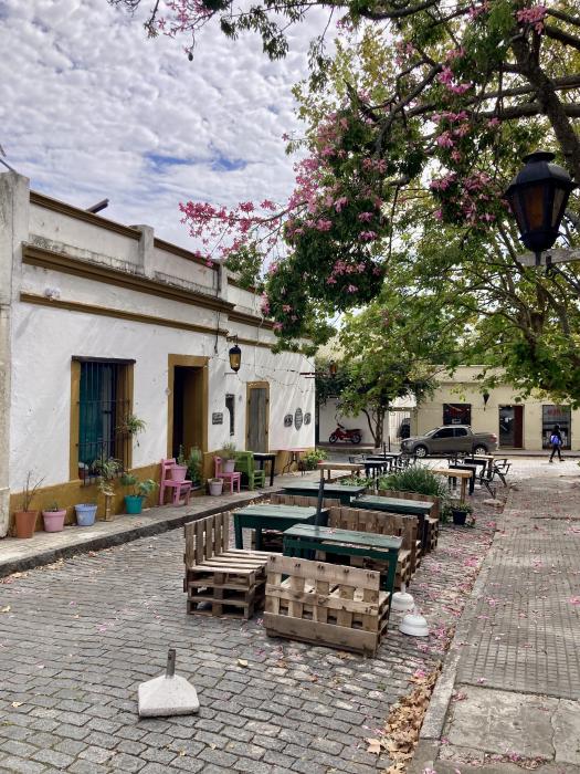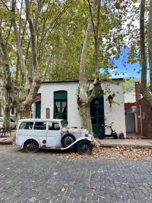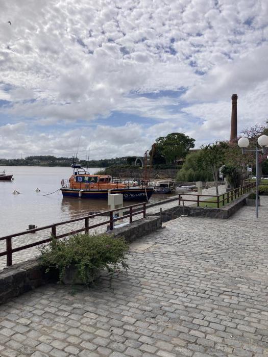 Über den Rio de la Plata nach Colonia Sacramento Nachdem 2012 die Fähre von Buenos Aires nach Uruguay überbucht war und wir nicht mitgekommen sind und am Osterwochenende vor zwei Wochen die Rückfahrten schon komplett ausgebucht waren, hat es nun geklappt mit der Überfahrt nach Colonia Sacramento. Um 8:30 Uhr legte die Fähre in Buenos Aires ab und da es sich um einen Grenzübertritt handelt, musste ich 90 Minuten vor Abfahrt am Hafen sein und das Procedere ähnelte dem bei Flugreisen. Einchecken, Ausweiskontrolle, Security Check und Boarding. Colonia Sacramento liegt genau auf der anderen Seite des Rio de la Plata in einer Entfernung von 50 km Luftlinie. Der Rio de la Plata kommt in meiner Fernwehliste der Flüsse wohl gleich hinter dem Rio Orinoco. Als Kind hatte ich das Buch „Vom Orinoco zum Amazonas“ gelesen und seitdem ist der Orinoco für mich der Inbegriff des unbekannten Weiten. Aber wie gesagt, der Rio de la Plata, kommt kurz dahinter. Am heutigen Tag präsentierte sich der Fluss aufgrund der Wetterlage als ein ziemlich wildes Ungetüm. Heftige Windböen zwangen sogar die Kite Surfer am Strand von Martínez zur Ruhepause. Ich stellte einmal wieder fest, dass ich nicht unbedingt seefest bin. So war ich recht froh, dass wir nach 75 Minuten den Hafen von Colonia erreicht hatten. Coloniapräsentiert sich als sehr gut erhaltene, kleine Kolonialstadt mit einem sehr sehenswerten historischen Stadtkern. Entgegen meinen normalen Gepflogenheiten habe ich mich vorher überhaupt nicht über die Stadt informiert und bin dann gleich auf Sightseeingtour gegangen. So bin ich etwas abseits der üblichen Touristenroute gelandet, was aber durchaus seinen Reiz hatte. So habe ich völlig menschenleere Ecken von Colonia entdeckt. Auch hier scheint die COVID Pandemie und vielleicht auch die wirtschaftliche Situation Argentiniens sich wieder zu spiegeln. Mir sind zahlreiche Gebäude und Immobilien aufgefallen, die zum Verkauf standen. Insgesamt aber eine schöne, historische und sehenswerte Stadt. Ich empfehle die Stadtbesichtigung Richtung Norden flussaufwärts auszudehnen. Schöne ruhige Strandabschnitte, die sich mit dicht bewachsenen Uferabschnitten abwechseln, laden zu einer ausgedehnten Wanderung ein.