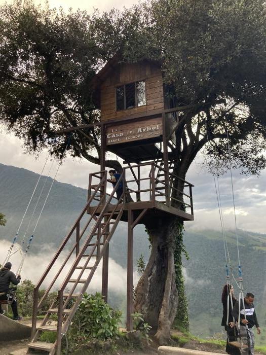 Ich bin gut im Ort angekommen, habe mein Quartier bezogen, mir Oregano Tee bestellt und dann erst einmal den Schlaf der letzten Nacht nachgeholt. Am nächsten Morgen ging es mir dann schon viel besser und ich beschloss eine Wanderung hinauf zu den Banos umgebenen Bergzügen zu unternehmen. Eigentlich wollte ich zum Aussichtspunkt Bella Vista laufen, eine Wanderung, die wir als Familie im Jahr 2017 schon einmal unternommen hatten. Auf halber Strecke gab es dann aber einen Abzweig zu einem anderen Mirador und da ich diesen noch nicht kannte, beschloss ich, dorthin zu wandern. Kein guter Entschluss wie sich dann herausstellte, denn es ging 1,5 Stunden nur steil berghoch und der versprochener Aussichtspunkt Mirador de Ventanas war nicht das erwartete Highlight. Oben angekommen war ich dann aber trotzdem, aufgrund der geschafften Leistung, zufrieden. Um wieder ins Tal zu gelangen hätte ich den gleichen Weg wieder bergab gehen müssen. Da der Weg aber sehr steil und auch noch sehr durchnässt war, erschien es mir zum einen etwas gefährlich und auch nicht sehr reizvoll diesen Weg wieder hinabzusteigen. So wanderte ich zu einer der zahlreichen Touristenattraktionen in der Nähe, einer so genannten Riesenluftschaukel, mit der man überm den Abgrund mit Blick auf Banos im Tal, schaukeln/fliegen kann. Hier traf ich auf einer 18-köpfige ecuadorianische Großfamilie, die alle möglichen Touristenattraktionen ausprobierten und mit drei Autos unterwegs waren. Ich sprach sie an, ob sie mich ins Tal mitnehmen würden und das war kein Problem und so konnte ich auf der Ladefläche eines Pick-ups mit der Reisegruppe mitfahren. Im Tal angekommen fühlte ich mich fit, um für den nächsten Tag eine Rafting Tour zu reservieren. Ich hatte ja schon Rafting Erfahrung in Ecuador auf dem Rio Napo und wollte nun einmal Rafting auf dem bekannten Fluss Rio Pastaza ausprobieren.