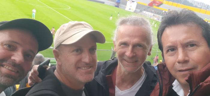 Besuch bei Freunden/Derbytime und im Tal der CondoreIn Quito zurück erwartete mich ein voll gepacktes Wochenende. Treffen mit ehemaligen Kollegen, Weggefährten und Freunden standen auf dem Programm. Zu dem gab es noch am Samstag einen Klassiker in Quitos Norden zu besuchen. Der ehemalige FC Bayern Ecuadors LDU Quito empfing den aktuellen Tabellenführer Aukas aus dem Süden. Dies ist nicht nur ein Duell des Tabellendritten gegen den Tabellenführer, sondern auch das Spiel des gut situierten Nordens gegen den armen Süden. Die Zutaten für einen unterhaltsamen Fußballnachmittag waren gegeben. Bestes Sommerwetter, ein volles Stadion und eine großartige Atmosphäre im La Casa Blanca, dem größten Fußballstadion in Quito. Es war ein sehr unterhaltsames Spiel und der Spitzenreiter aus dem Süden gewann die Partie mit 2:1. Das Spiel hätte auch fünf zu vier ausgehen können, es ging hin und her und im Gegensatz zur Bundesliga wird hier kaum taktiert, sondern immer schnell das Tor gesucht. Das war das dritte Stadion, welches ich von vier Erstligadtadien besuchen konnte. Es bleibt anzumerken, dass es hier in Ecuador keine Probleme gibt, sich Tickets für die Spiele zu besorgen. Dies soll in Argentinien komplett anders sein und ich bin gespannt, was mich diesbezüglich dort erwartet. Auf der Fahrt zurück nach Cununyacu, wo ich bei Corinna und Ivan immer noch mein Quartier in den Bergen bezogen habe, gaben zum ersten Mal seit zweieinhalb Wochen die Wolken den Cotopaxi frei. Dies ist immer wieder ein beeindruckendes Bild. Für mich ist der Cotopaxi der schönste aller Vulkane, da er eine lehrbuchentsprechende symmetrische Kegelform besitzt. Gewissermaßen majestätisch zeigt sich der mit 5897 m Höhe zweithöchste Berg Ecuadors dem Betrachter.