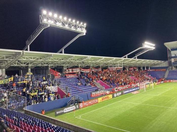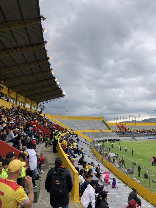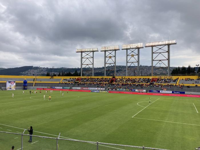 Angekommen im Süden sahen wir das Stadion schon von weitem. Mitten im Wohngebiet befindet sich dieses 1994 erbaute Stadion „La caldera del sur“ mit seinen charismatischen Flutlichtmasten. Es hat aktuell ein Fassungsvermögen von knapp 19.000 Zuschauern. Aukas ist ein Quechua Wort und bedeutest so viel wie wild. Es ist ein alter Traditionsverein, der 1945 gegründet wurde und in den ersten Jahren sehr erfolgreich spielte. Die erfolgreichsten Jahre liegen aber schon lange zurück und ich kannte diesen Verein nur als einen Verein aus der zweiten beziehungsweise dritten Liga. Vor einigen Jahren stieg der Verein aber wieder in die Serie A auf und wurde 2022 sensationell zum ersten Mal ekuadorianischer Meister und spielte bis zu diesem Jahr auch in der Copa Liberdatores.
