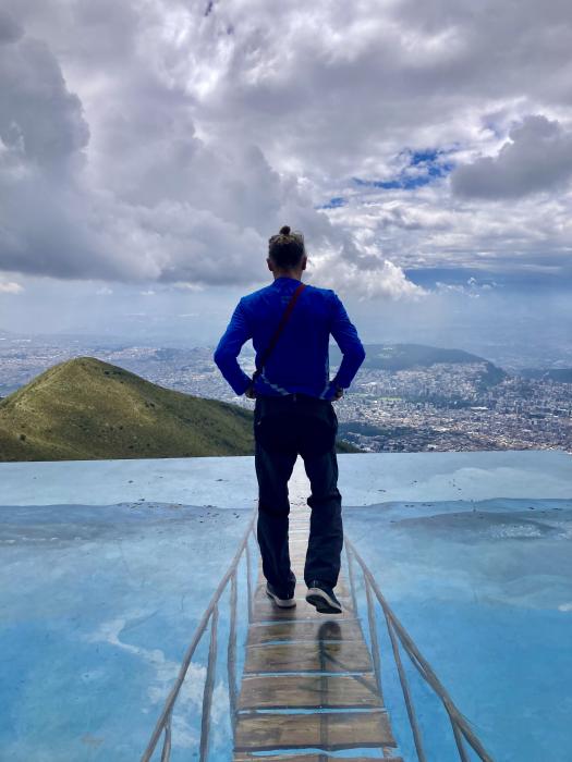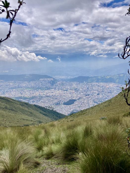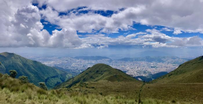 Die Fahrt mit der Seilbahn dauert circa 18 Minuten und es wird eine Höhendifferenz von 2800 m von der Basisstation bis auf 4050 m auf der Bergstation überwunden. Oben angekommen gibt es viele wundervolle Blicke auf die beeindruckende Stadt Quito, die sich wie ein langes, städtisches Band in Nord Süd Richtung über circa 50-60 km erstreckt. Die Ost Westausdehnung hingegen beträgt nur ungefähr 3-4 km. Ich lief ein wenig in Richtung Rucu Pichincha aber nach circa 35 Minuten stellten sich erste leichte Kopfschmerzen ein und ich entschied, wieder zur Bergstation zurück zu wandern und bei einem Kaffee die Aussicht zu genießen. Einen Aufstieg zum Rucu hatte ich eh für heute nicht geplant, da ich wie gesagt dafür 5-6 Stunden einplanen müsste. Das Wetter hier am Äquator kann sich innerhalb kürzester Zeit ändern und auch heute bildeten sich rasch hohe Wolken, die den erhofften Blick auf den Cotopaxi oder Cayambe versperrten. Es ist trotzdem immer wieder ein erhabenes Gefühl von hier oben auf die Stadt zu schauen.
