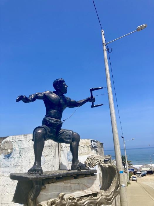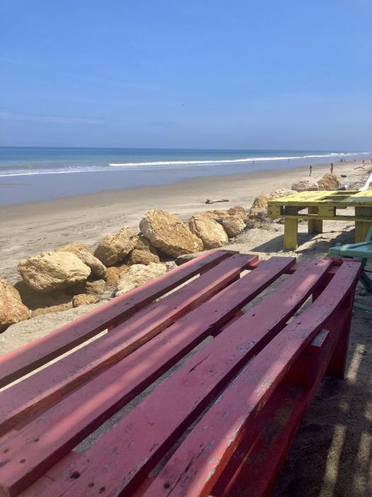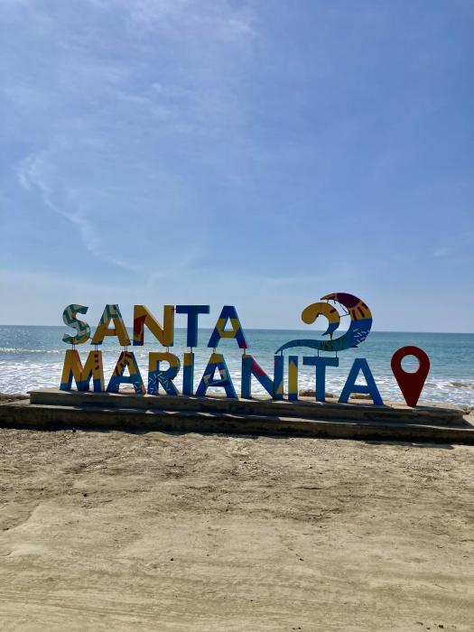 15 km weiter südlich ist davon nichts mehr zu spüren. Ein idyllischer Ferienort Santa Marianita empfängt mich und meine Unterkunft, die sich am südlichen Ende des malerischen Ortes befindet, liegt auf einer Anhöhe mit einem atemberaubenden Blick über den Pazifik. Es sind so gut wie keine Touristen aktuell in der Region. Das liegt zum einen daran, dass ich an einem Montag hier angekommen bin und auch daran, dass aktuell keine Hochsaison ist und auch die Sicherheitslage in Ecuador scheint eine Rolle zu spielen.