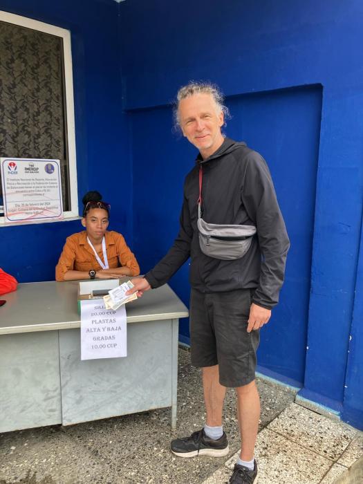 Also umgerechnet 8 beziehungsweise 4 Euro Cent. Die Ticket Verkäuferin sagte mir, dass das Spiel um 17:00 Uhr beginnen wird. Auf den Tickets stand aber Spielbeginn 20:00 Uhr? Unwichtige Details, kann schon mal passieren in Kuba, dass die Tickets nicht die richtige Anwurfzeit ausweisen. Am Haupteingang zur Halle traf ich meine Einlasserin vom letzten Mal. Sie erkannte mich wieder und lies uns in die Halle hinein. Dort waren einige Arbeiter damit beschäftigt, den letzten Korb zu montieren und einige Offizielle sahen sich die Halle an. Wir mittendrin und ich glaube, hätten wir einen Basketball zur Hand gehabt, hätten wir auch ein paar Körbe werfen können. Unglaublich, an einem Vortag vor einem wichtigen Qualifikationsspiel zwischen der kubanischen Nationalmannschaft und den US amerikanischen Basketballern. Wir sind gespannt auf den morgigen Nachmittag. Wie viel Zuschauer wird es geben, wie werden die Amerikaner begrüßt, werden die Kubaner unterstützt, mit welchem Team reisen die US Amerikaner an?
