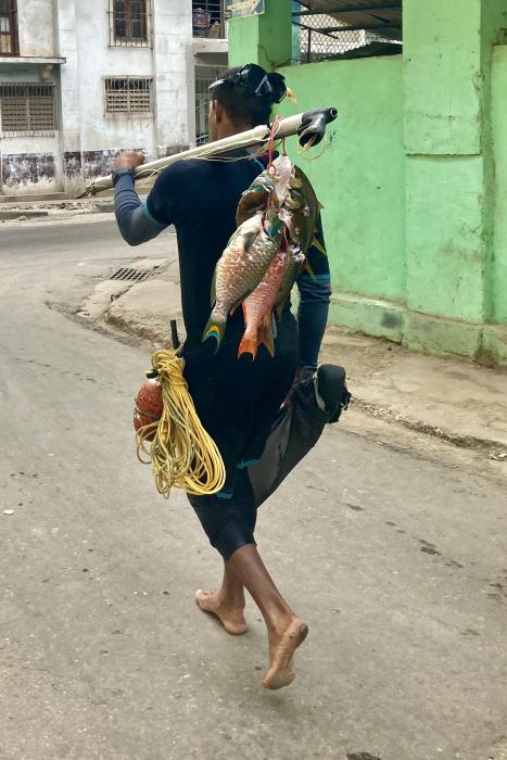 Es ist der einsame Fischer, den ich am Malecón treffe und der mir seine gefangen Fische zeigt, die er zum Abendbrot essen möchte und der mich fragt, ob ich nicht etwas Öl für ihn hätte, denn sonst kann er seine Fische nicht braten.
