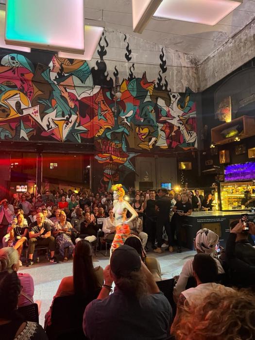 La Fábrica Wenn Havanna heruntergekommen und abgerockt ist, dann stellt sich die Frage, gibt es noch ein anderes Havanna. Wenn du dies sehen möchtest, musst du die Fabrik deARTE Cubano in Havanna besuchen. (FAC) ein Ort, in dem die Subkultur, Kunst und Musikszene Kubas zu Hause ist. Das Gebäude ist eine ehemalige ÖlFabrik, die am ehesten mit dem Tacheles in Berlin der Neunzigerjahre zu vergleichen ist. So anders, als das Havanna, dass wir bisher kennen gelernt haben. Der heutige Abend begann mit einer Live Performance, die als Modenschau angekündigt war. Der Star der Show waren aber nicht die schönen weiblichen und männlichen Models, sondern die Präsentatorin, beziehungsweise Moderatorin der Show. Dabei handelte es sich um TelMary Diaz die bekannteste Rap Musikerin Kubas. Sie gilt als Stilikone der selbstbewussten, kubanischen Kunst und Musikszene. Sie verwandelte mit ihrer Performance die Halle in eine singende und tanzende Menge. Dabei muss erwähnt werden, dass sie selbst die Kollektion der Modenschau kreiert, entworfen und produziert hat. Eine kreative, karibisch kubanische Mode, kombiniert mit kraftvollen Latino Rap. Bestandteil der Kollektion sind eindrucksvolle Kopfbedeckungen, die die Künstlerin auch als Unterstützung und Support für an Krebs erkrankte Frauen gewidmet hat. Ein unvergessliches Erlebnis. Als schönen Abschluss gab es noch ein Selfie mit dieser bemerkenswerten Künstlerin. Und auch das ist wieder ein Symbol der kubanischen Gesellschaft, dass die weiblichen und männlichen Topmodels am Ende des Abends, in einer diversen und tanzenden Menge von Menschen aller Hautfarbene untergingen und nicht wie extravagante Stars den Nebenausgang nahmen. La fábrica.. wirklich ein besonderer Ort. nächstes ziel: